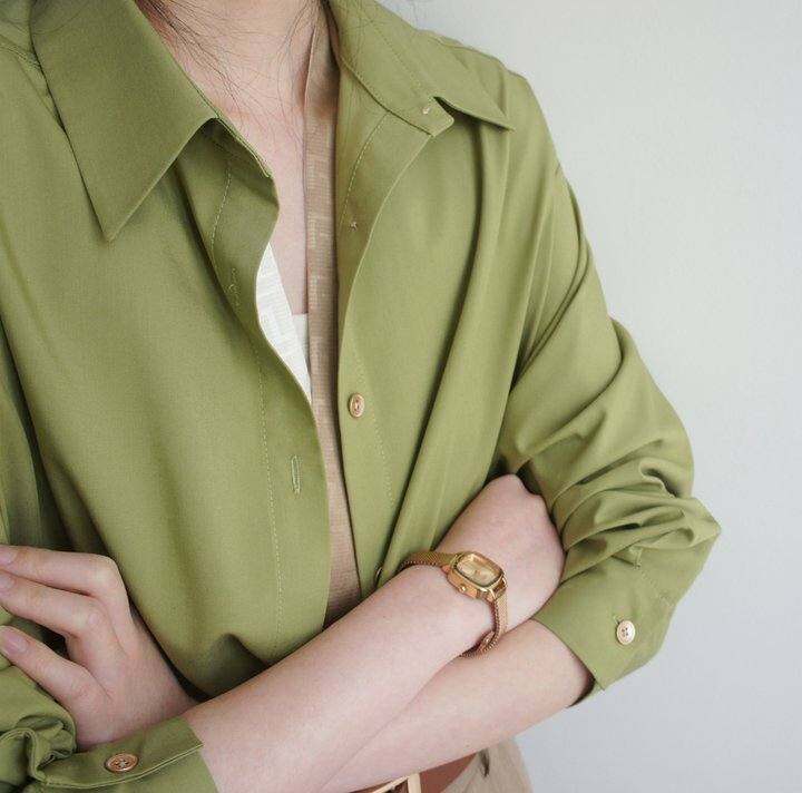 已收到。这个绿实物非常复古,比图片好看,非常显白。单穿配卡其色裤子真是复古味十足。夏季防晒也不错。她家衬衫如果款式和颜色喜欢,一般都是闭眼入的。
