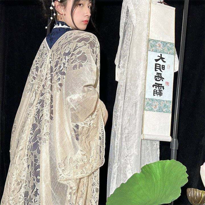 大明恶霸·镂空蕾丝百合花朵开衫外套旗袍搭配薄款宽松日常流苏