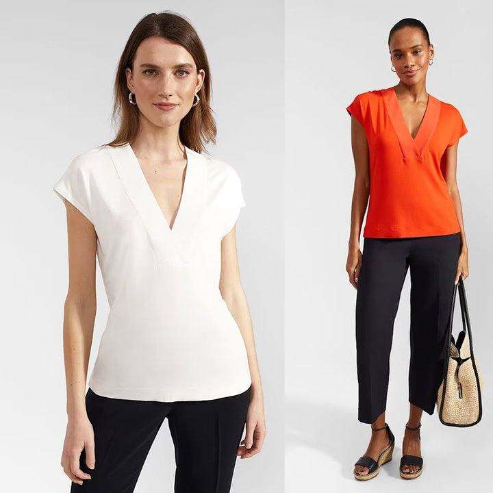 泊汀外贸原单 96%粘胶纤维4%弹性纤维大V领连肩短袖T恤