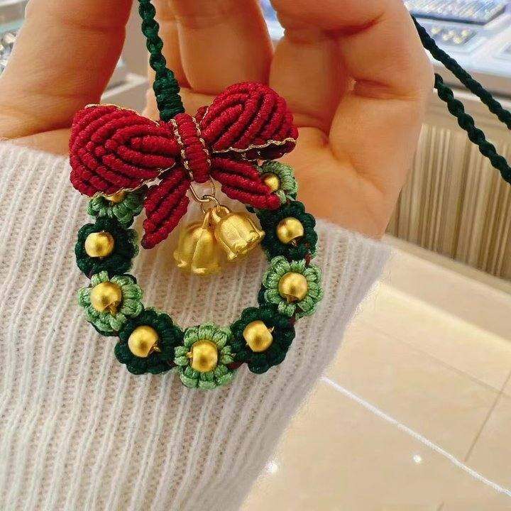 潮鋐基正品黄金铃兰花手机挂足金蝴蝶结圣诞树项链花环送女友礼物