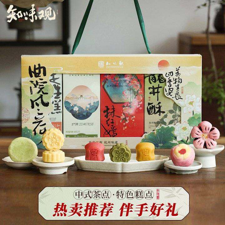 知味观杭州特产伴手礼曲院风荷传统中式糕点礼盒装桃花龙井酥送礼