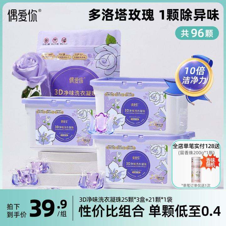 偶爱你3D净味洗衣凝珠三合一去异味10倍洁净除菌除螨多洛塔留香
