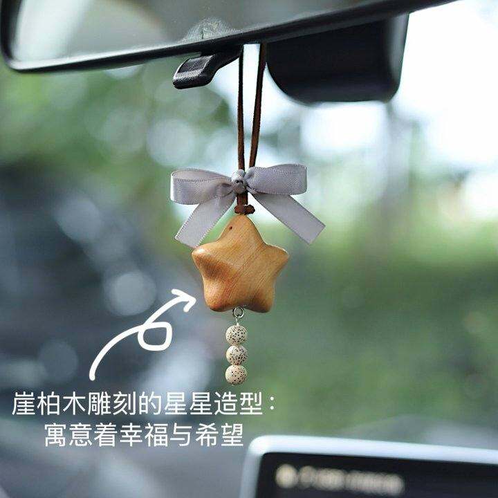 崖柏雕刻星星汽车挂件星月菩提精致后照镜摆件新车礼物送客户车内饰品