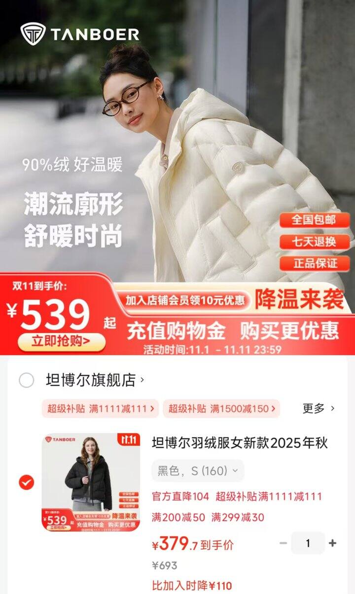 速‼坦博尔短款羽绒服