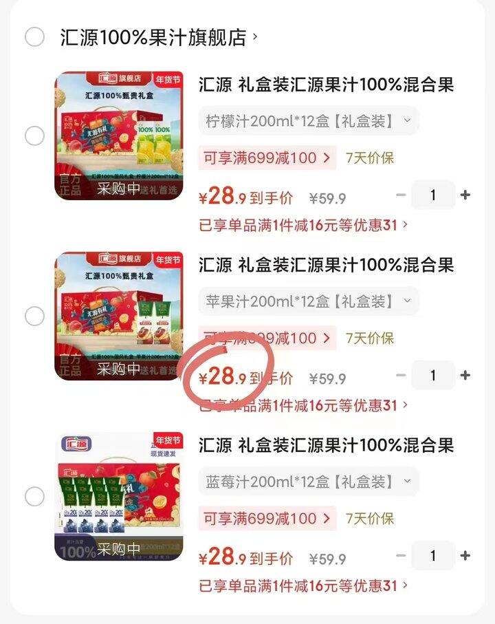 汇源果汁礼盒