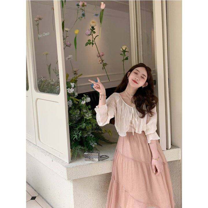 【6.18晚8点95折+满减】璃花岛 粉色吊带裙+刺绣防晒开衫