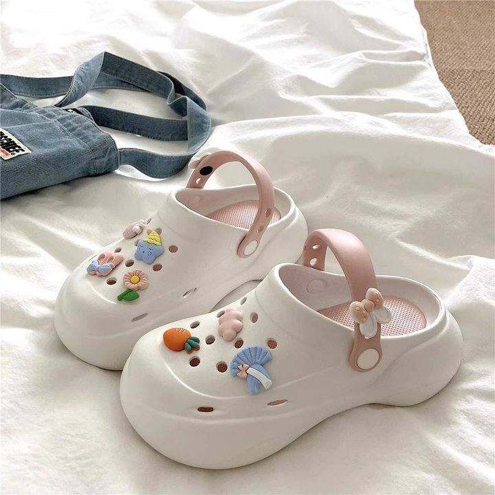 仙女紫~!小众增高厚底洞洞鞋女学生透气百搭防滑凉鞋ins外穿拖鞋