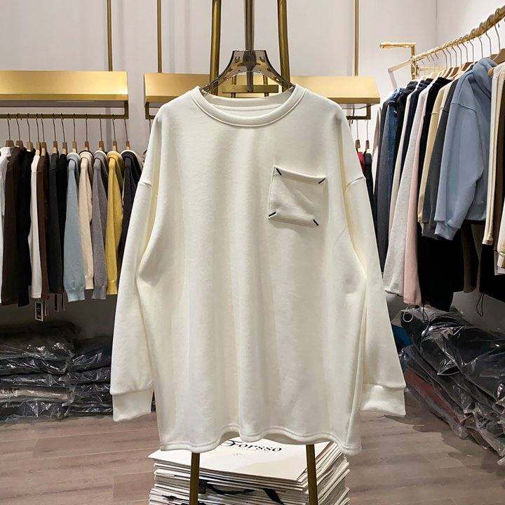 【晓艾档口实拍】氛围感大版单口袋宽松加绒T恤衫女秋冬叠穿上衣