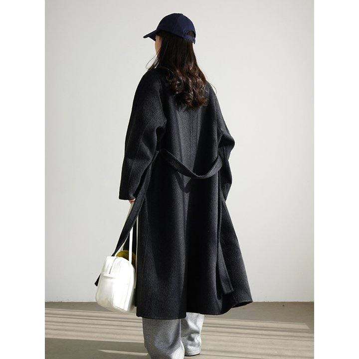 琎口澳洲CHAO细羊毛/桑蚕丝廓形斜襟双面呢外套女大衣《MNHXZC003