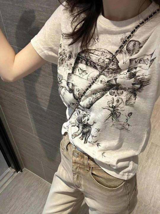 这个夏天穿得最多的短袖,非常百搭,偏薄要穿无痕粉底液内衣,衣长正正好好,配中裤特别好看。