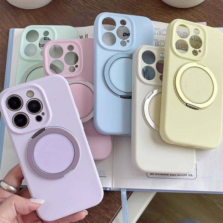 惠恩惠 适用苹果16promax手机壳纯色15液态硅胶防摔男女14旋转支架13高级感带支架新款16plus小众全包