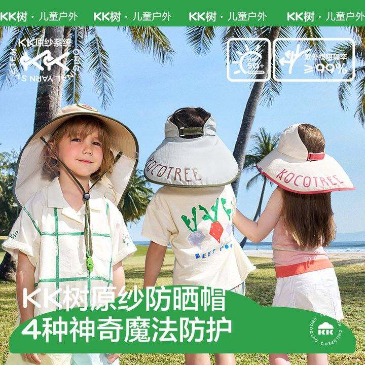 KK树大帽檐儿童防晒帽夏季宝宝遮阳帽男童女童太阳帽防紫外线沙滩