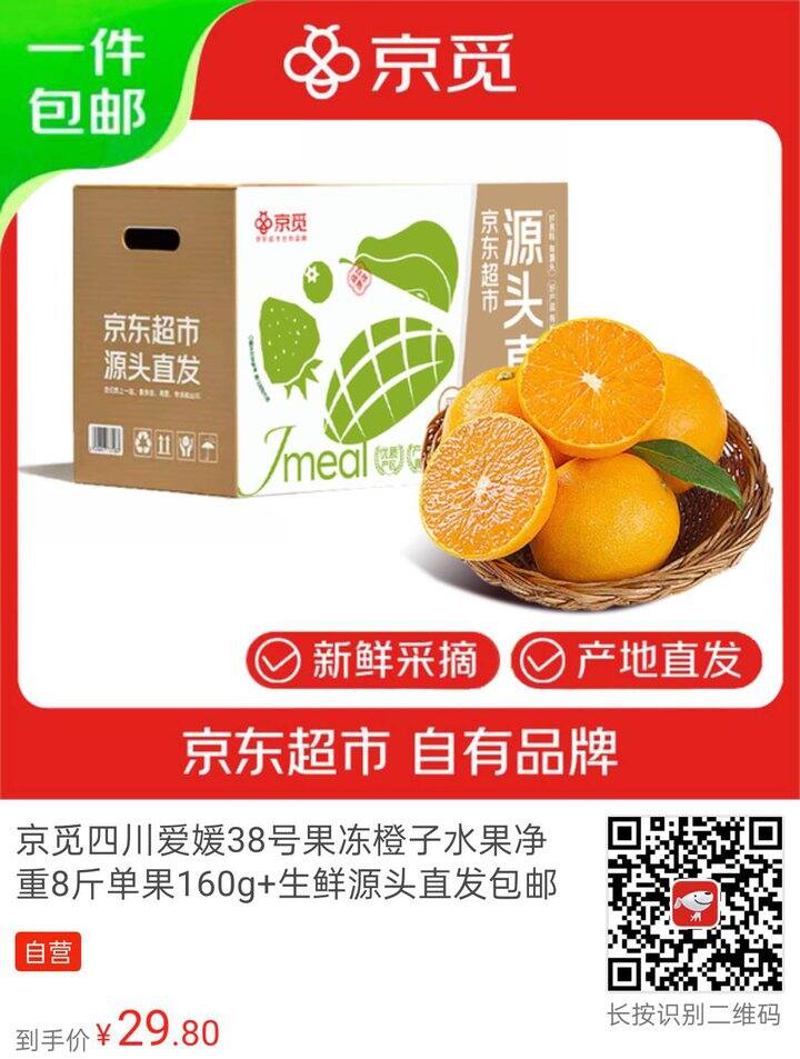 【京东】京觅四川爱媛38号果冻橙子水果净重8斤单果160g+生鲜源头直发包邮
