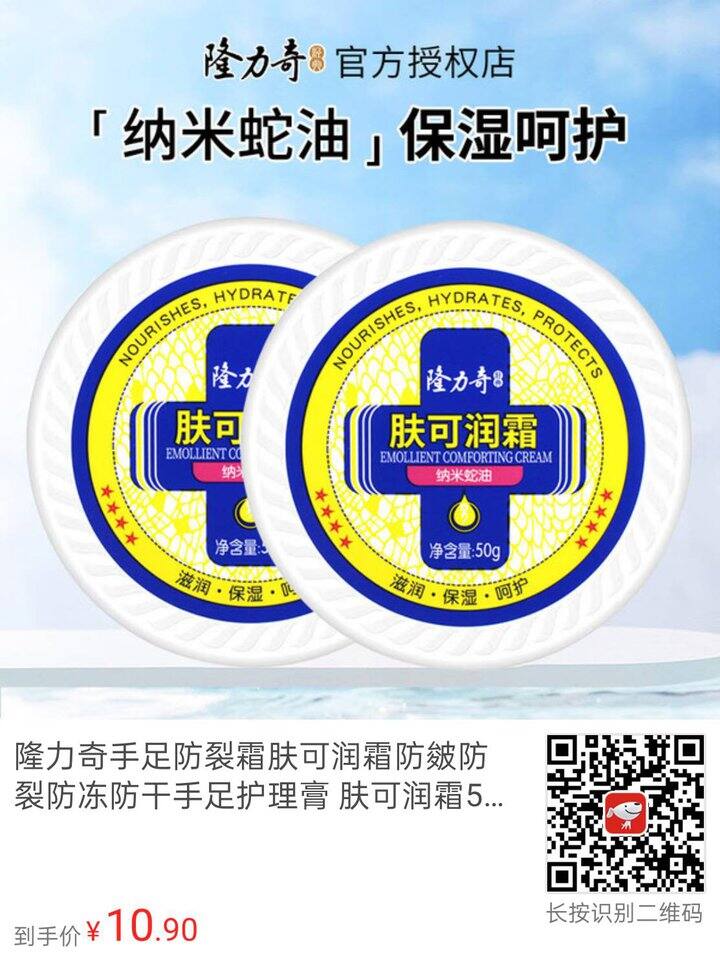 【京东】隆力奇手足防裂霜肤可润霜防皴防裂防冻防干手足护理膏 肤可润霜50g*2盒