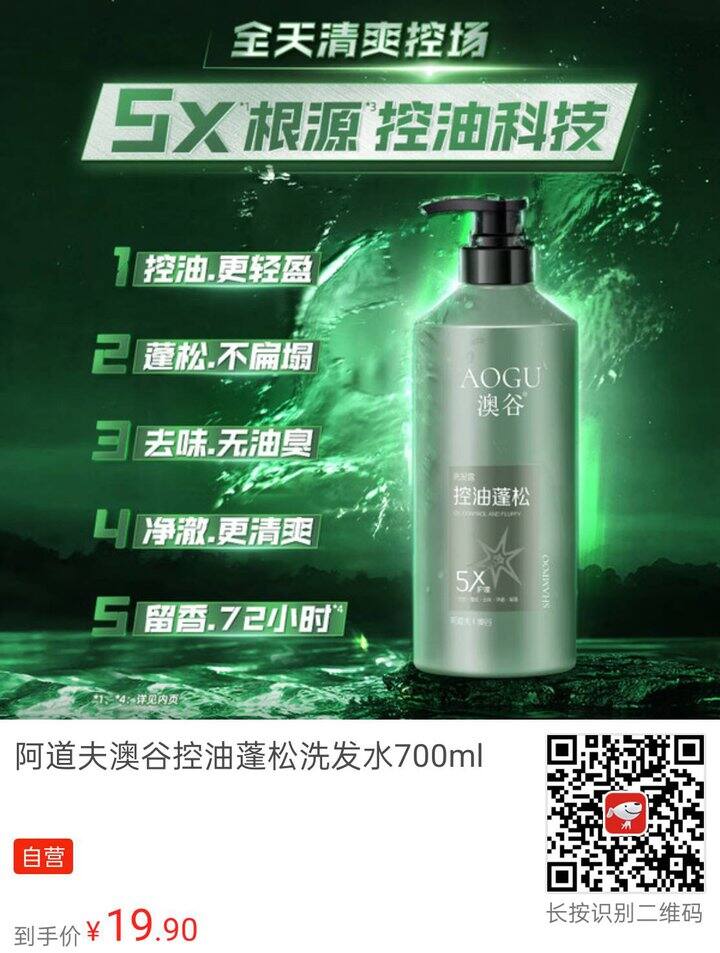 【京东】阿道夫澳谷控油蓬松洗发水700ml