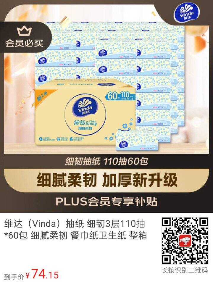 【京东】维达(Vinda)抽纸 超韧Plus挂抽3层280抽*8提M码 马年新春款 悬挂式纸巾整箱
