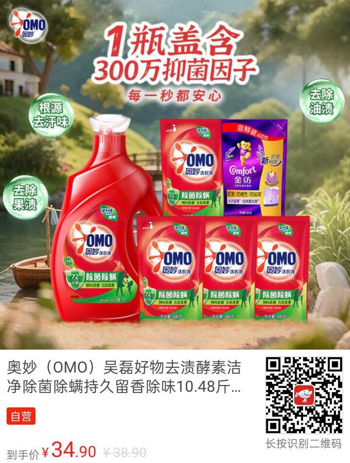 【京东】奥妙(OMO)吴磊好物去渍酵素洁净除菌除螨持久留香除味10.48斤校服净洗衣液
