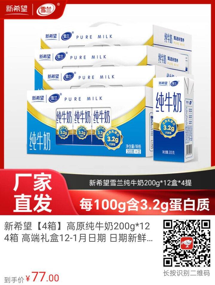 【京东】新希望【4箱】高原纯牛奶200g*12 4箱 高端礼盒12-1月日期 日期新鲜 4提装
