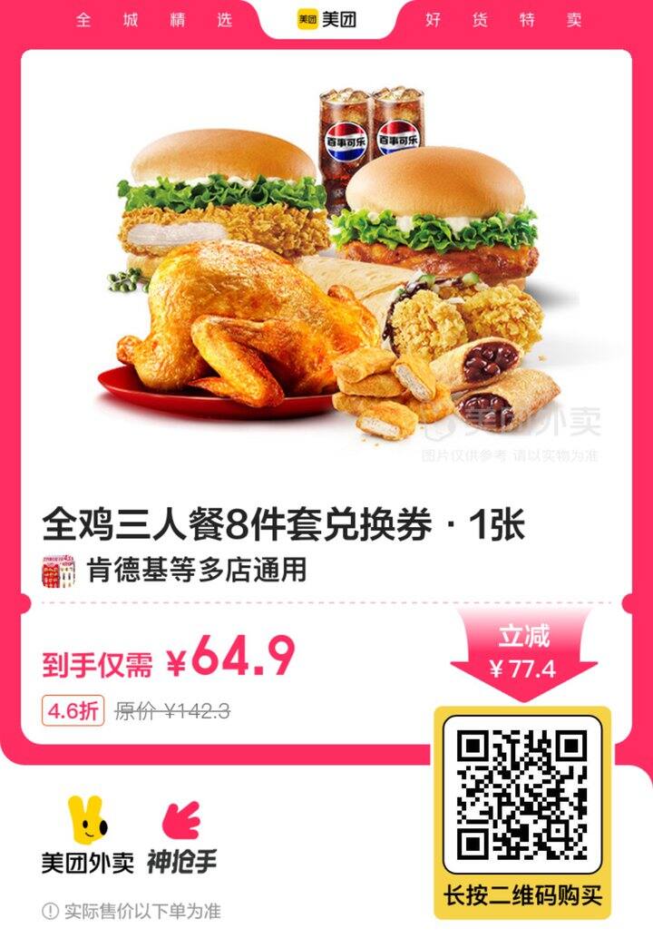 🔥【外卖】肯德基|全鸡三人餐8件套兑换券·1张|多店可用