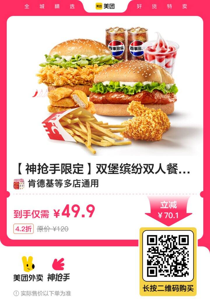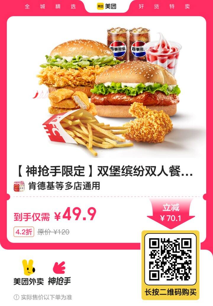 🔥【外卖】肯德基|神抢手专享堡堡双人餐8件套兑换券·1张|多店可用