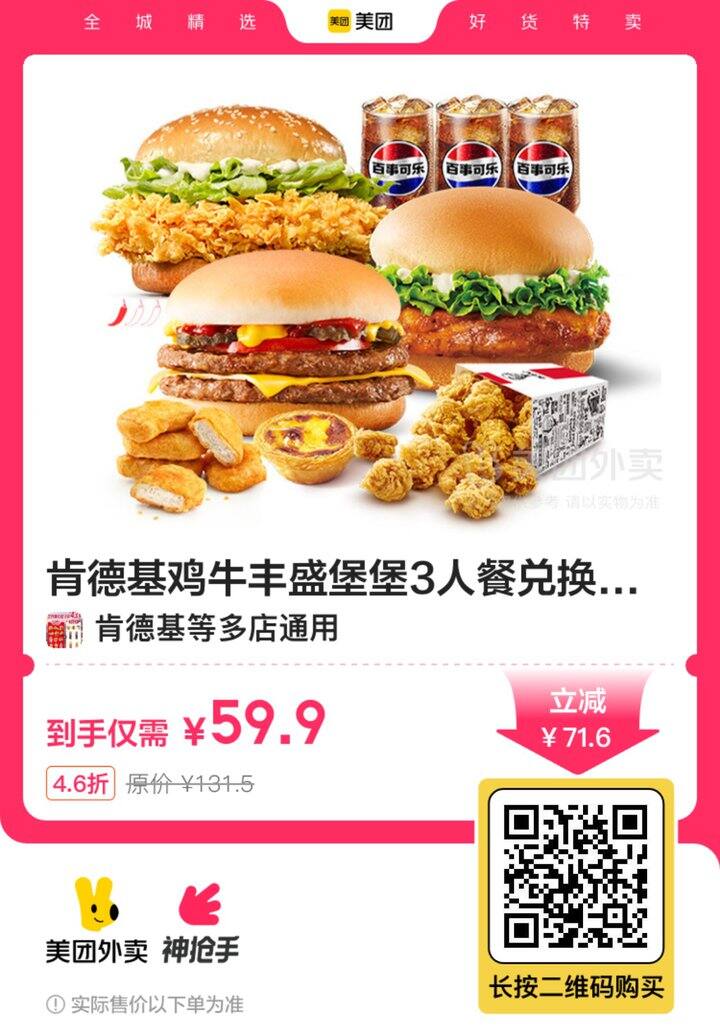 🔥【外卖】肯德基|肯德基鸡牛丰盛堡堡3人餐兑换券·1张|多店可用