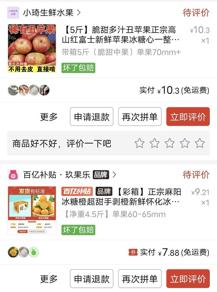 我经常在拼多多百亿补贴上买水果,心理上感觉品质更好一些,而且这也真的太划算了!很难不心动下单啊!