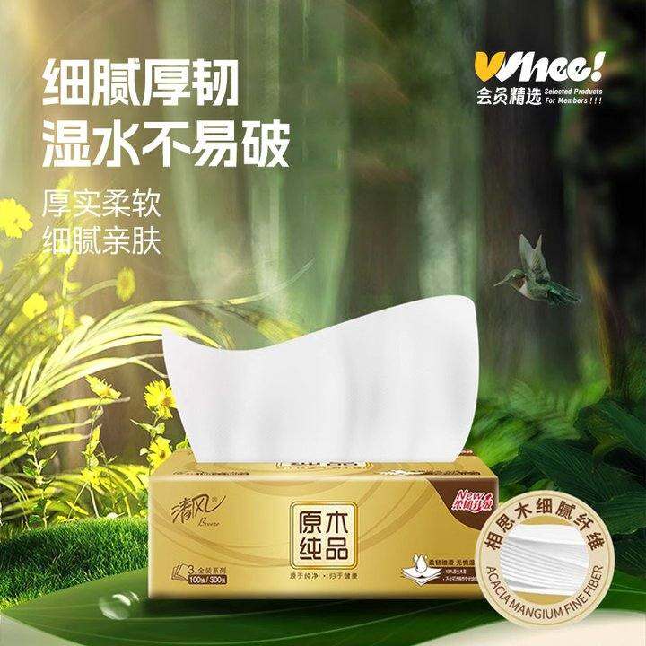 会员精选清风原生木浆金装抽纸100抽*12包提装