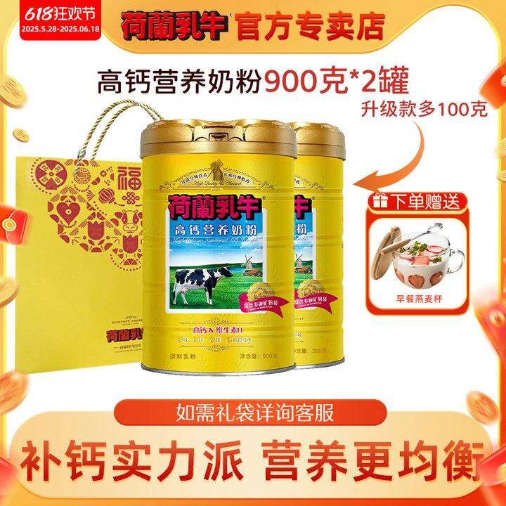 荷兰乳牛奶粉高钙营养成年成人女士学生奶粉冲饮早餐900g*2罐专卖