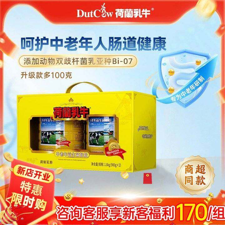 【咨 咨询有礼】荷兰乳牛中老年益生菌奶粉900gx2罐礼盒装成人奶粉