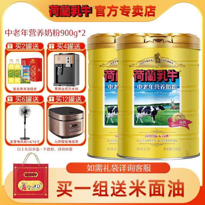 荷兰乳牛中老年配方奶粉900g*2罐高钙高硒老年人营养奶粉官方专卖