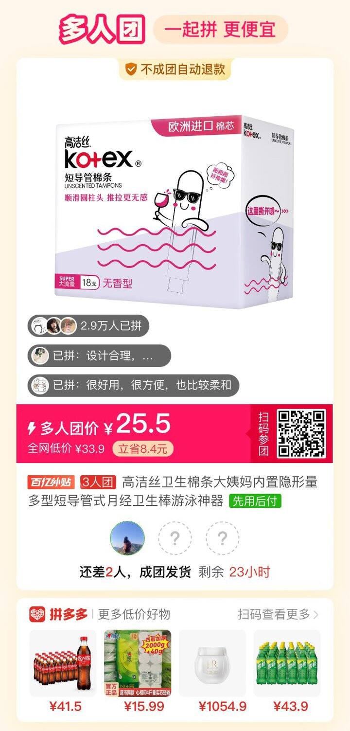 1:/⇥iQqnlvBXCp2yc⇤ 复制并打开拼多多APP,25.5元拼团购买高洁丝卫生棉条大姨妈内置隐形量多型短导管...,仅剩2个名额
