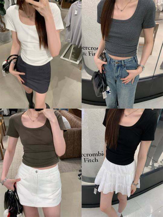 辣辣小心机 正肩小蛮腰显瘦褶皱U领 T恤