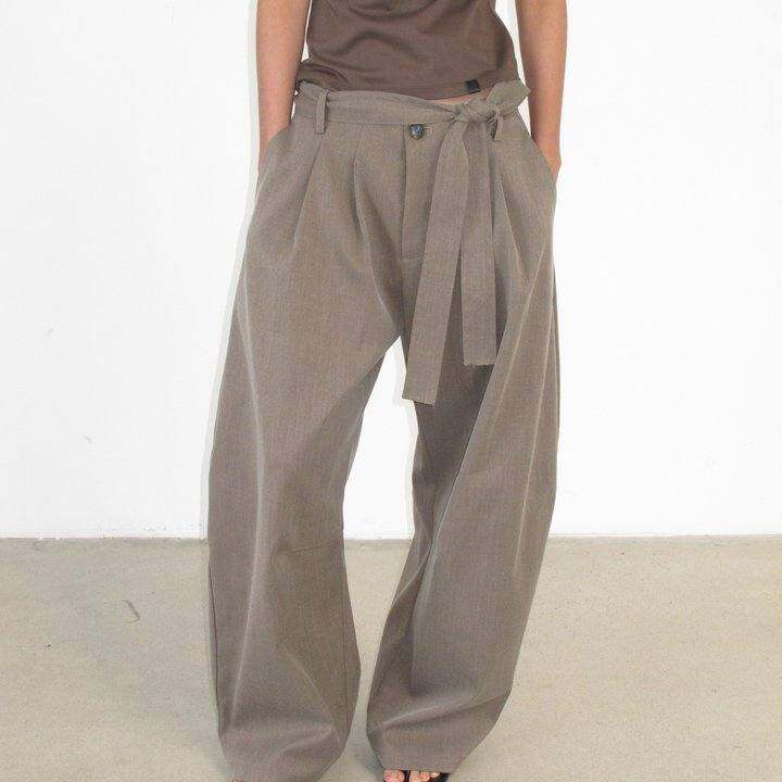 NOT UGLY 25ss 灰卡其流光霜感腰带剑道打褶低腰弯刀休闲裤