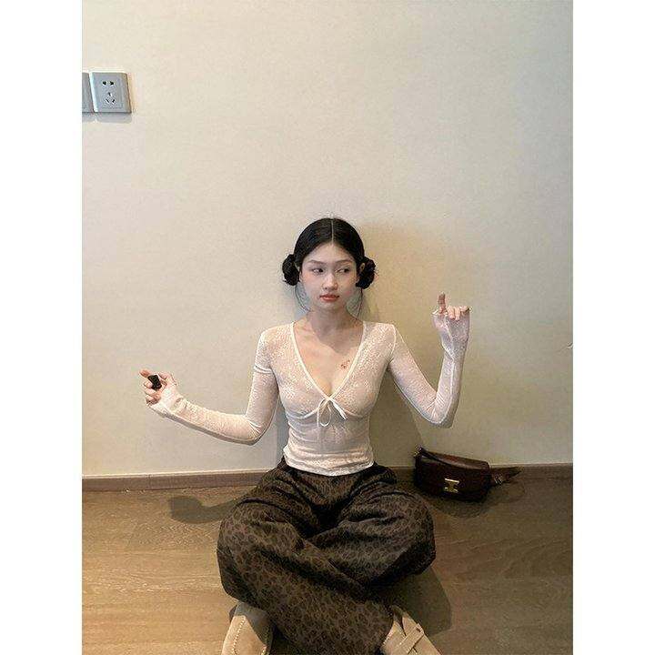 夏蓝汐雨 SMBL RAIN纯欲甜辣妹性感低胸v领短款别致绝美蕾丝小衫