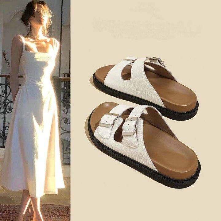 正品拖鞋女夏外穿2024新款仙女风配裙子高级感厚底一字拖勃肯凉鞋