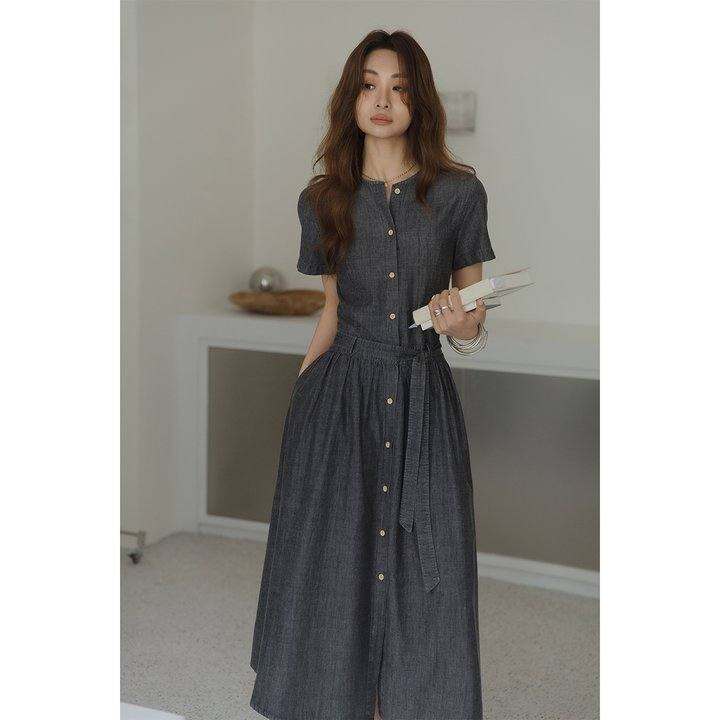 王妃家老钱风复古连衣裙女夏2025新款高级感气质显瘦收腰长款裙子