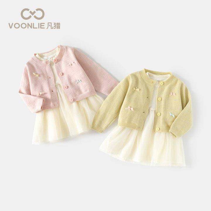凡猎女童连衣裙秋装2025新款洋气儿童公主裙宝宝针织开衫套装春秋