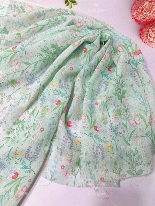 荔枝兔晓家100支纯苎麻印花布料原创版权夏连衣裙童装布面料