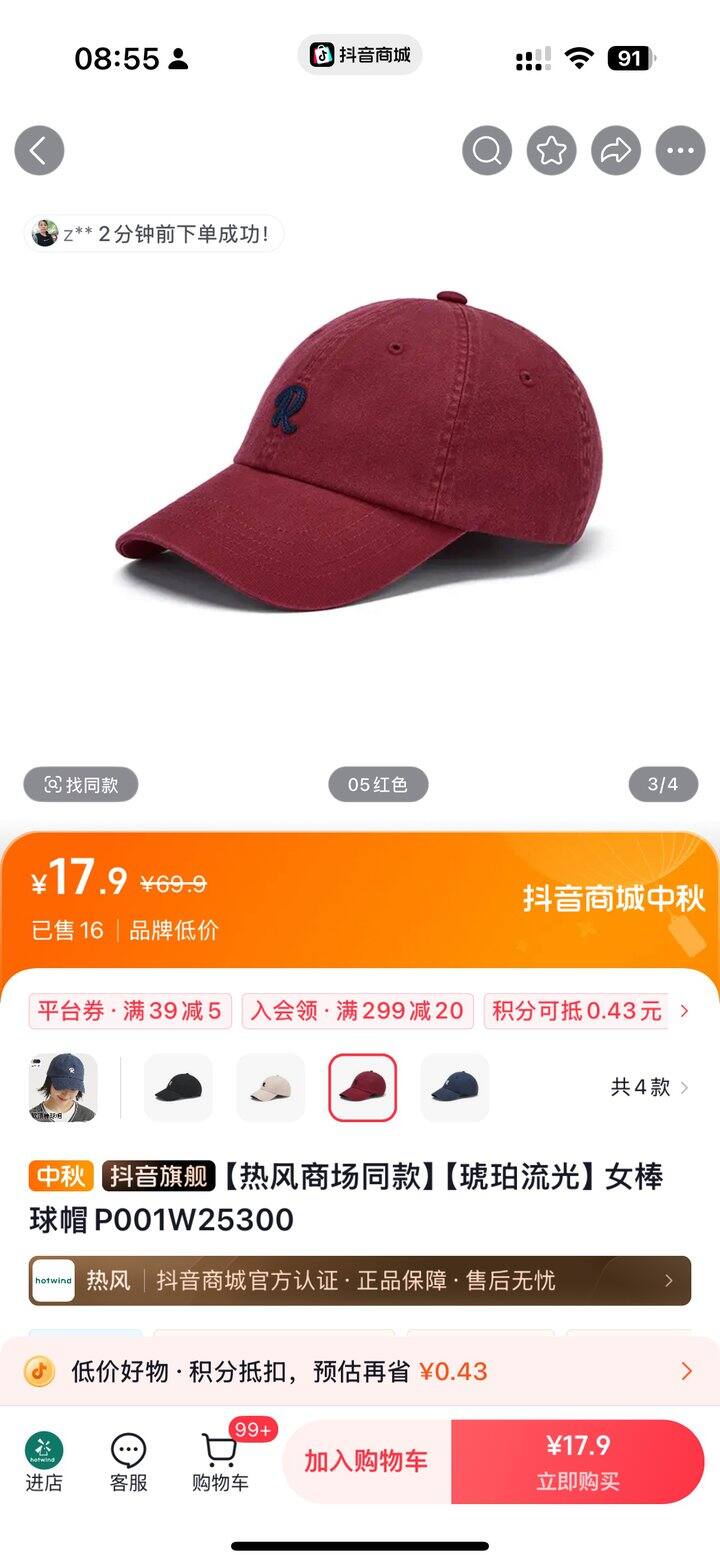 热风这个帽子终于蹲到好价了,之前看一直是50+