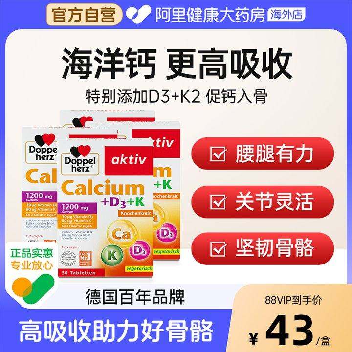 德国双心进口钙片*4维生素d3k有机钙成人儿童孕妇中老年补钙