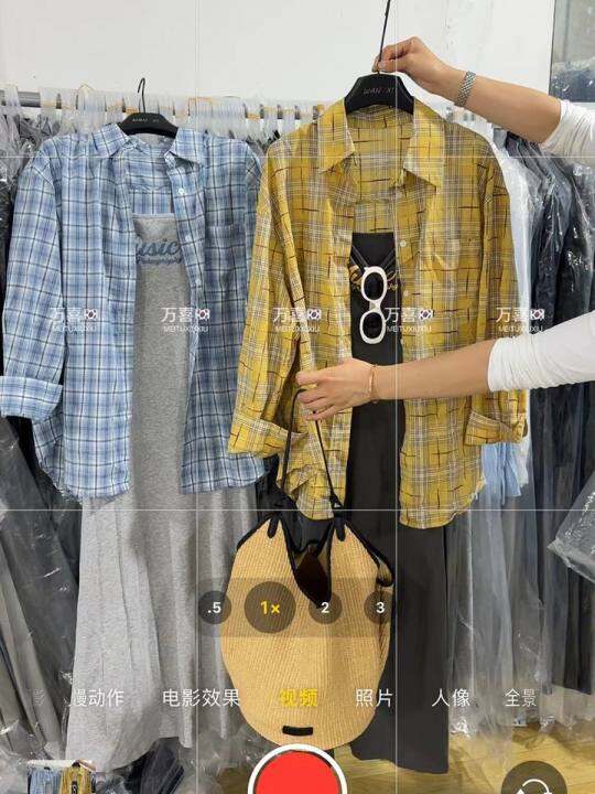 防晒薄款格子衬衫+字母修身吊带连衣裙两件套百搭减龄 2024夏新款