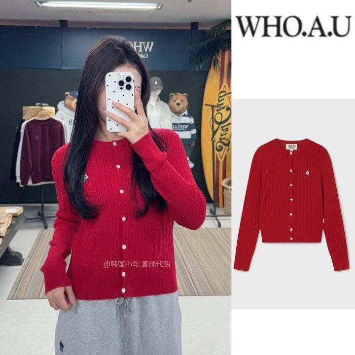 韩国小北 whoau直邮代购 新品小熊时尚百搭纯棉针织开衫