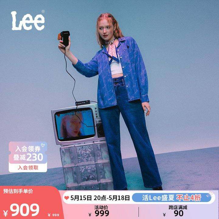 Lee商场同款24春夏新品美颜牛仔428舒适高腰直脚中浅蓝女牛仔裤