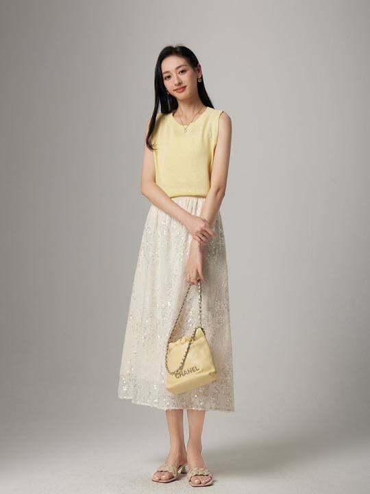 未央丨逐浪/重工提花亮片A字半身裙女夏季法式小众高腰气质长裙子