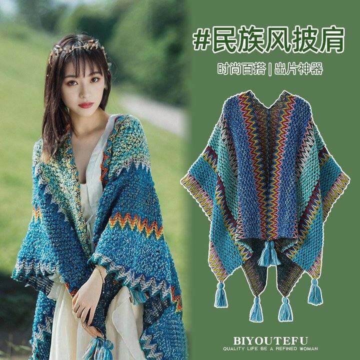 丽江披肩民族风新疆西藏旅游穿搭青海云南外搭斗篷外套披风围巾女
