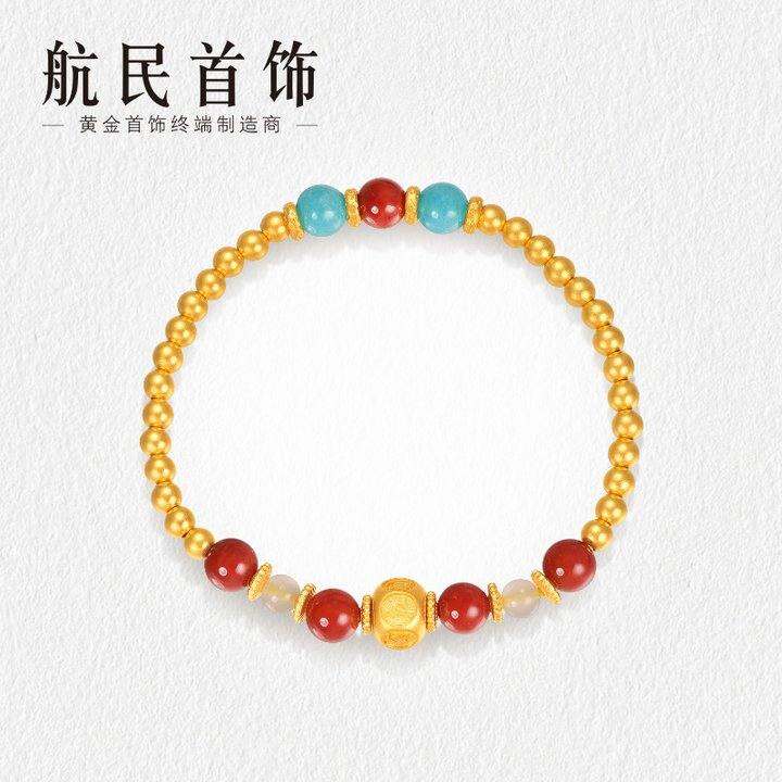 航民首饰 六字真言黄金手链足金古法绿松手串女XYA2068工费550/件