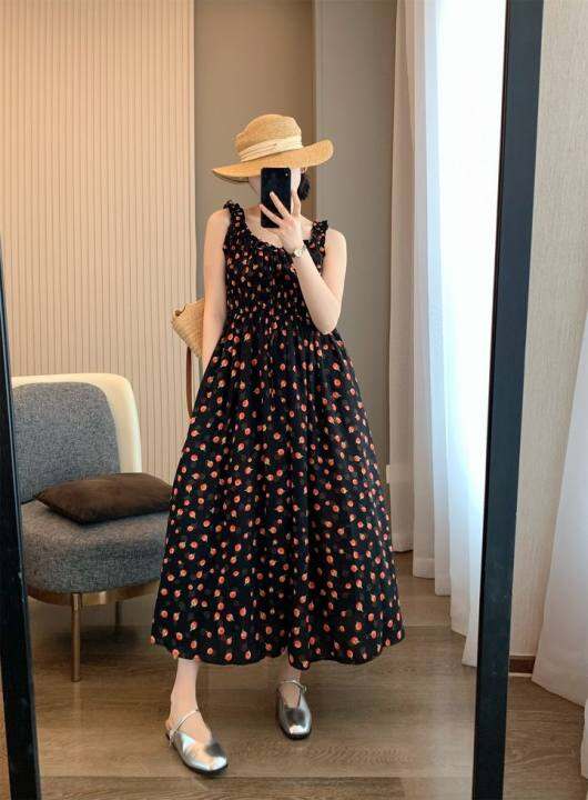 IN BLUE 帮工厂清货!仅690件~艺术感油画印花度假风收腰吊带裙女