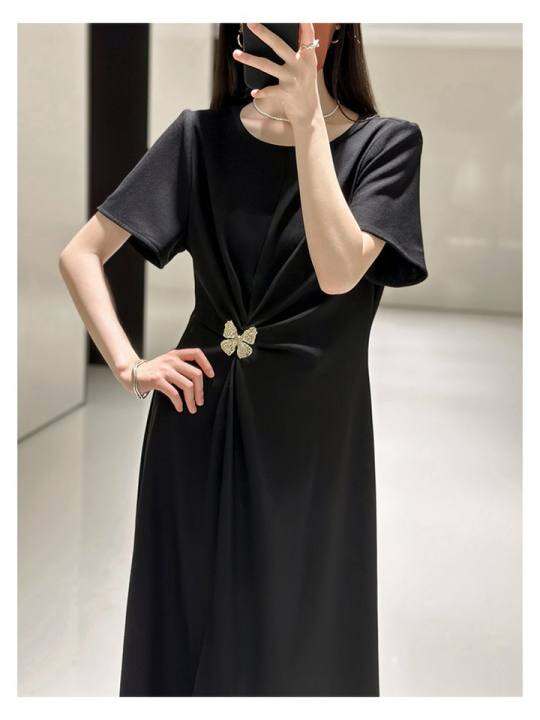 弹力罗马布立裁工艺可拆卸装饰圆领连衣裙女夏「UXZS076