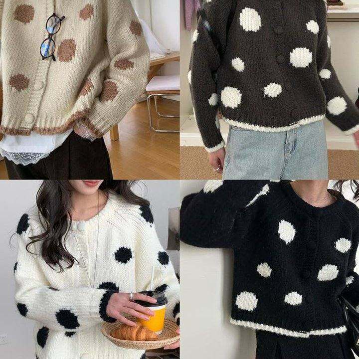 波鸡蛋家【荔枝肉奶】韩系波点毛衣外套宽松短款加厚针织衫上衣