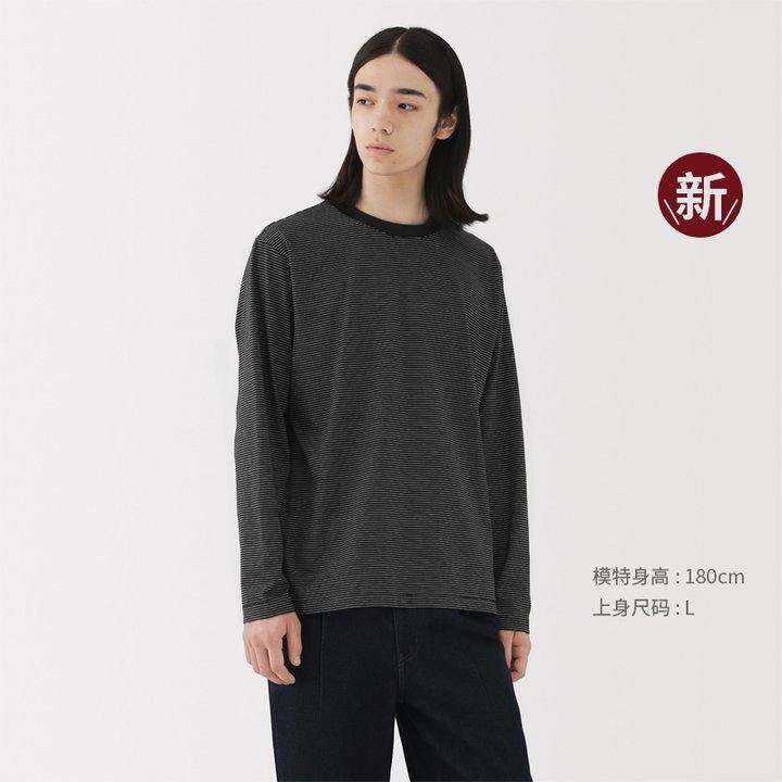 无印良品 MUJI 男式 天竺编织圆领长袖T恤男士打底衫男装秋季新品